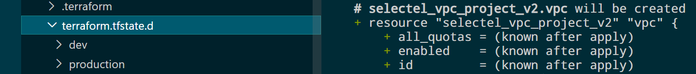 У нас будет 2 workspaces, это production и dev. Как только ты создаешь workspace, то terraform автоматически переключается на эту «ветку».